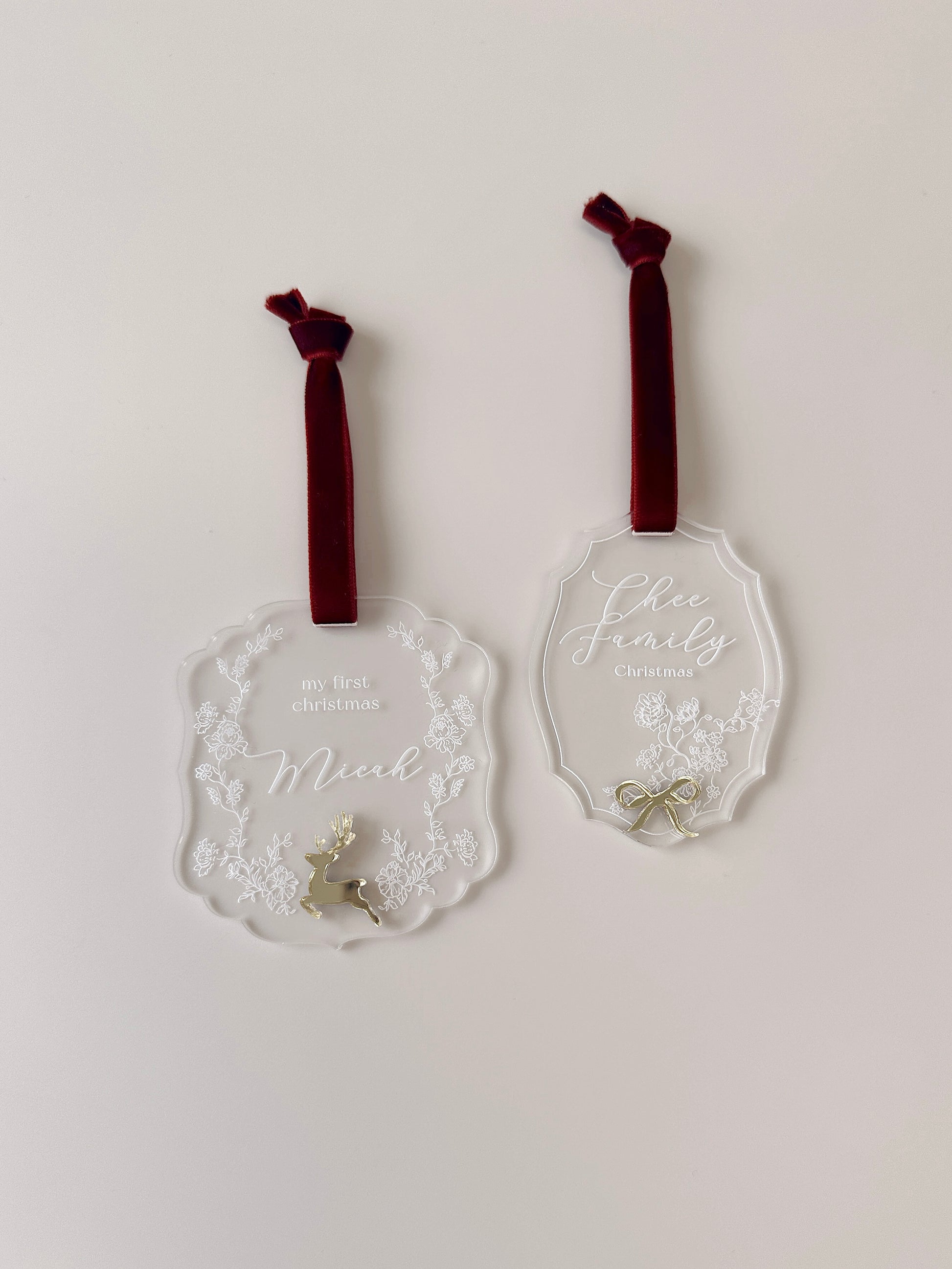 Our Clear Etched Christmas Ornament is crafted from crystal-clear acrylic and etched with festive designs that catch the light beautifully. Perfect for hanging on the tree, giving as a gift, or keeping as a cherished keepsake, it adds a touch of elegance and sparkle to your Christmas celebrations year after year.