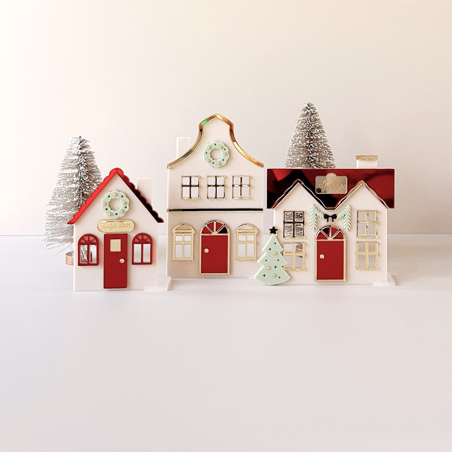 DETAILS : Create your own little world of Christmas magic with this enchanting acrylic village set.