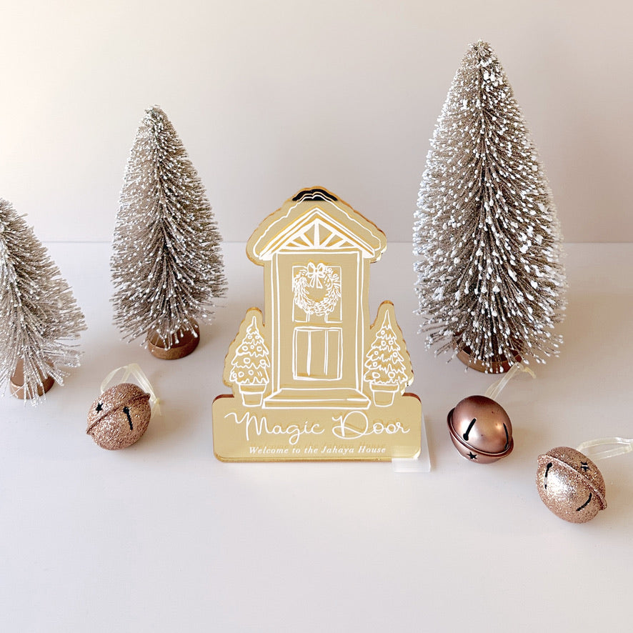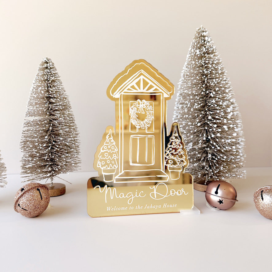 This sleek mirror acrylic “magic door” is the perfect entryway for Santa and his elves — a playful detail that brings a hint of wonder to your festive décor.