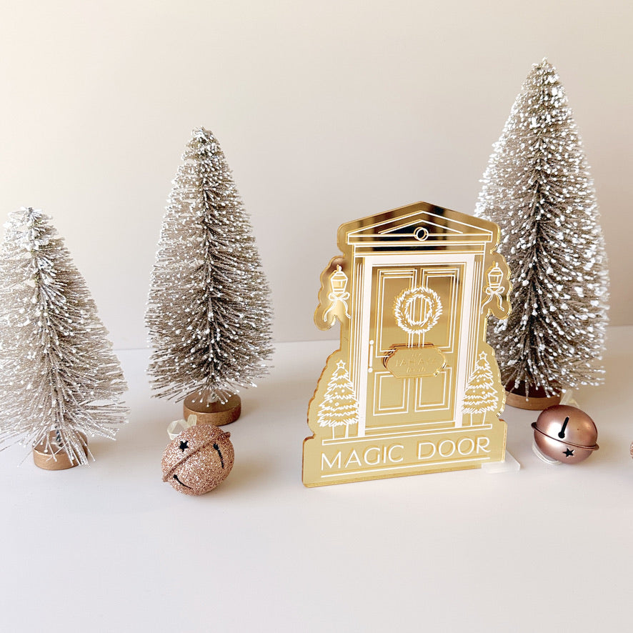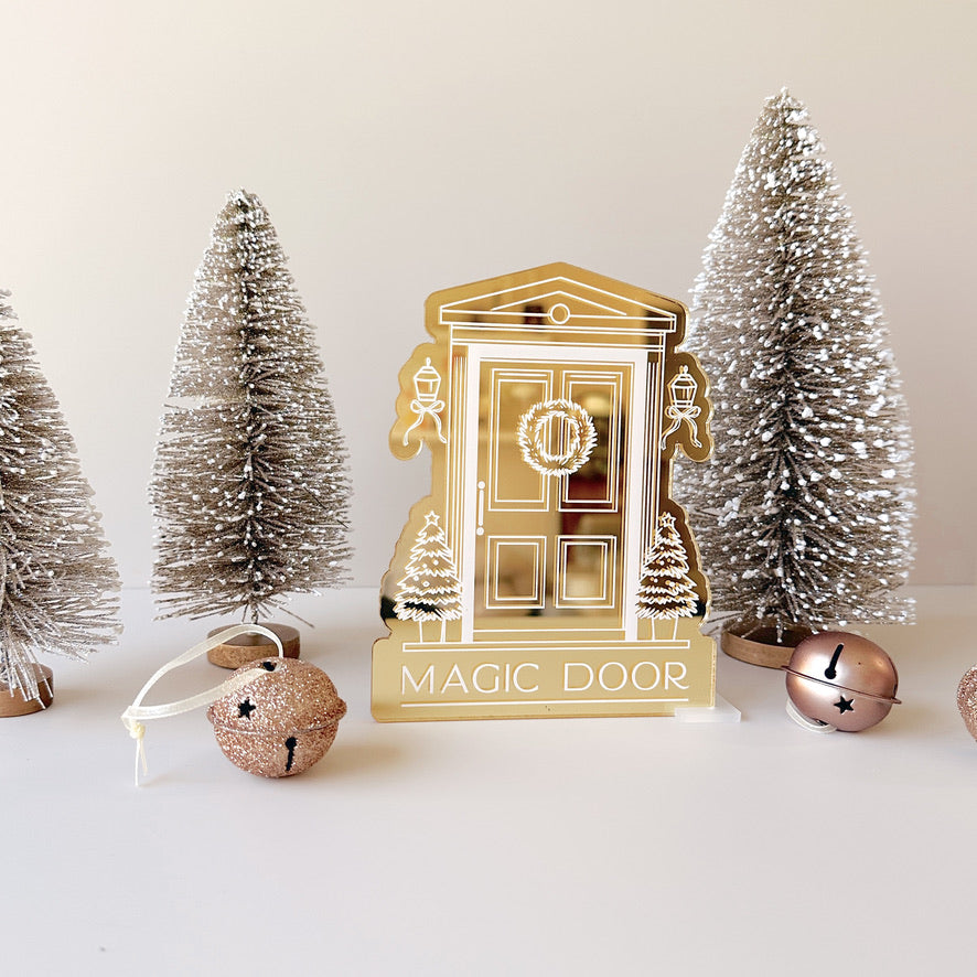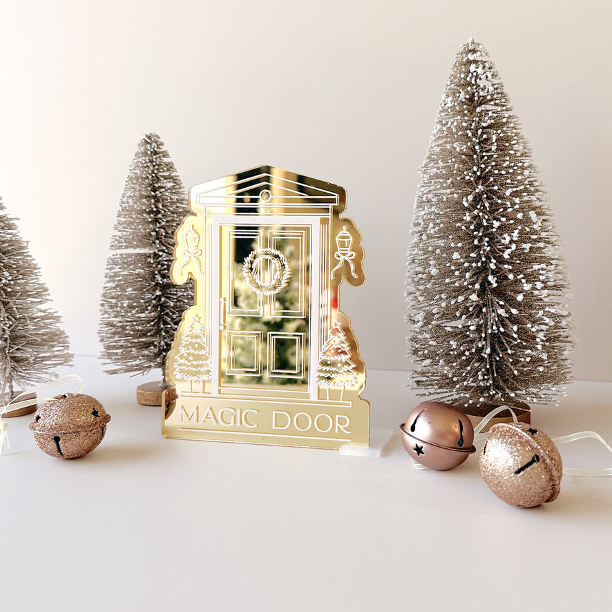This sleek mirror acrylic “magic door” is the perfect entryway for Santa and his elves — a playful detail that brings a hint of wonder to your festive décor.