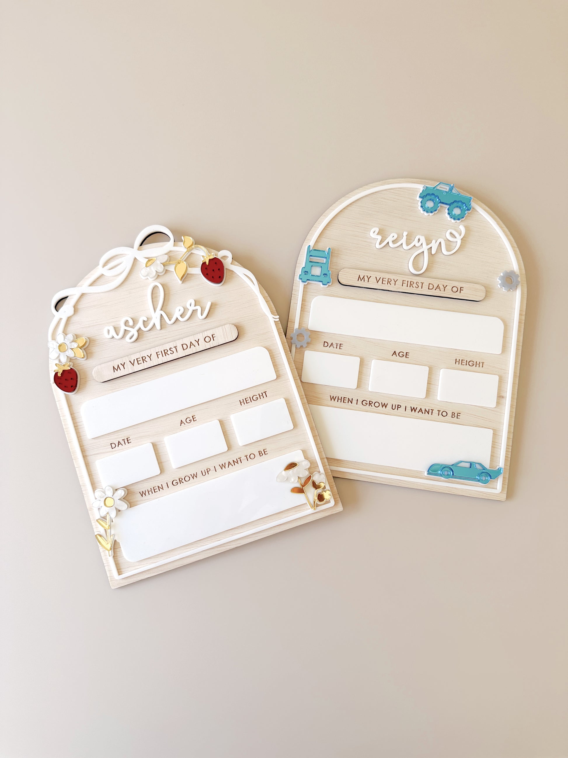 A sweet little back-to-school plaque made from natural wood, decorated with soft flowers and cheerful strawberries. It has a warm, happy feel that’s perfect for celebrating the start of a new school year. A lovely keepsake to mark those first-day moments and something you’ll enjoy bringing out year after year.